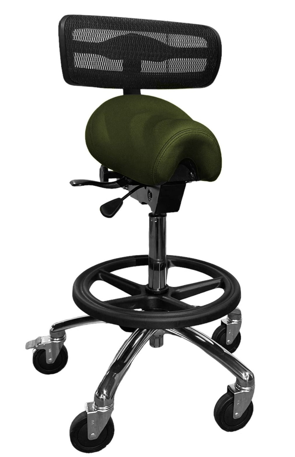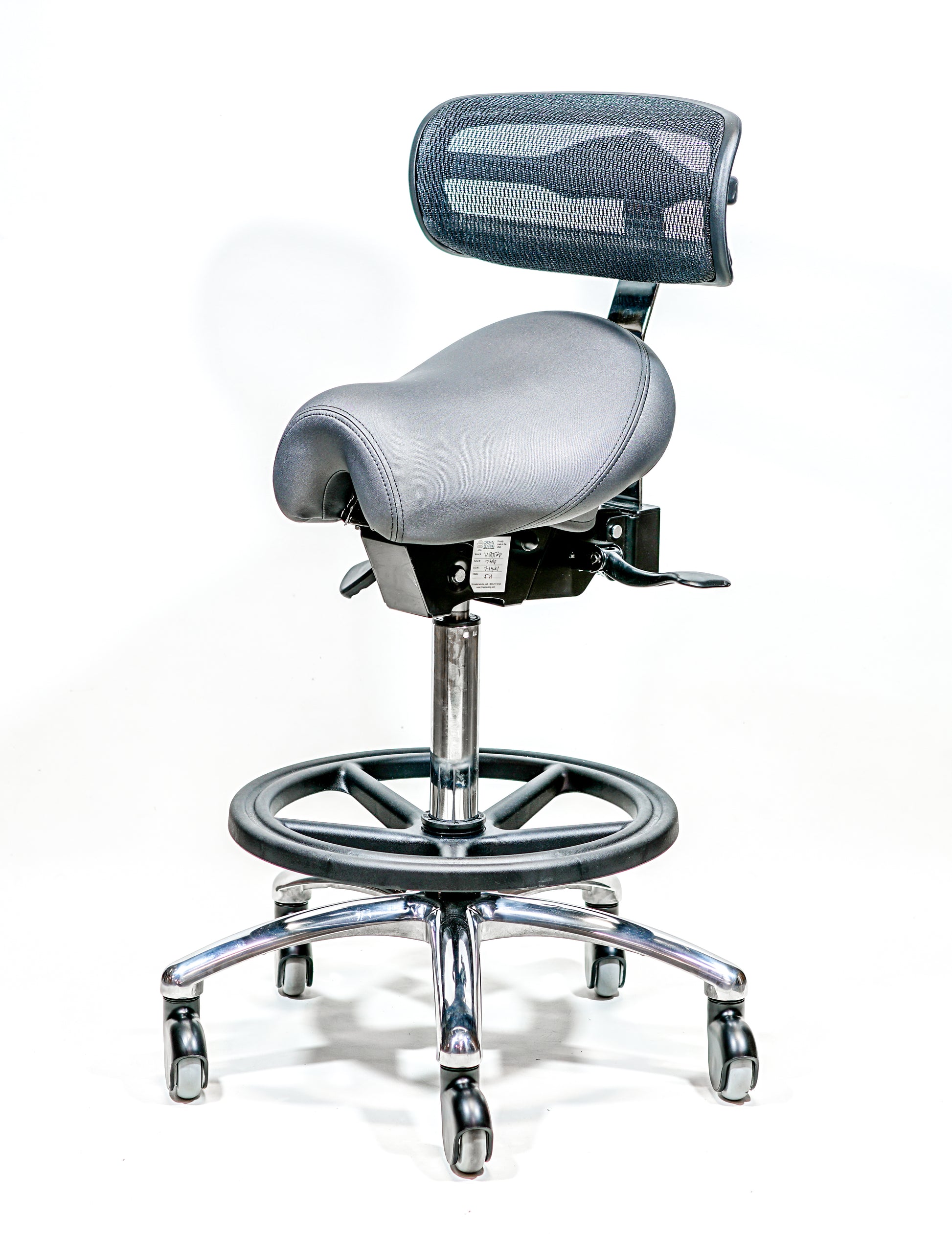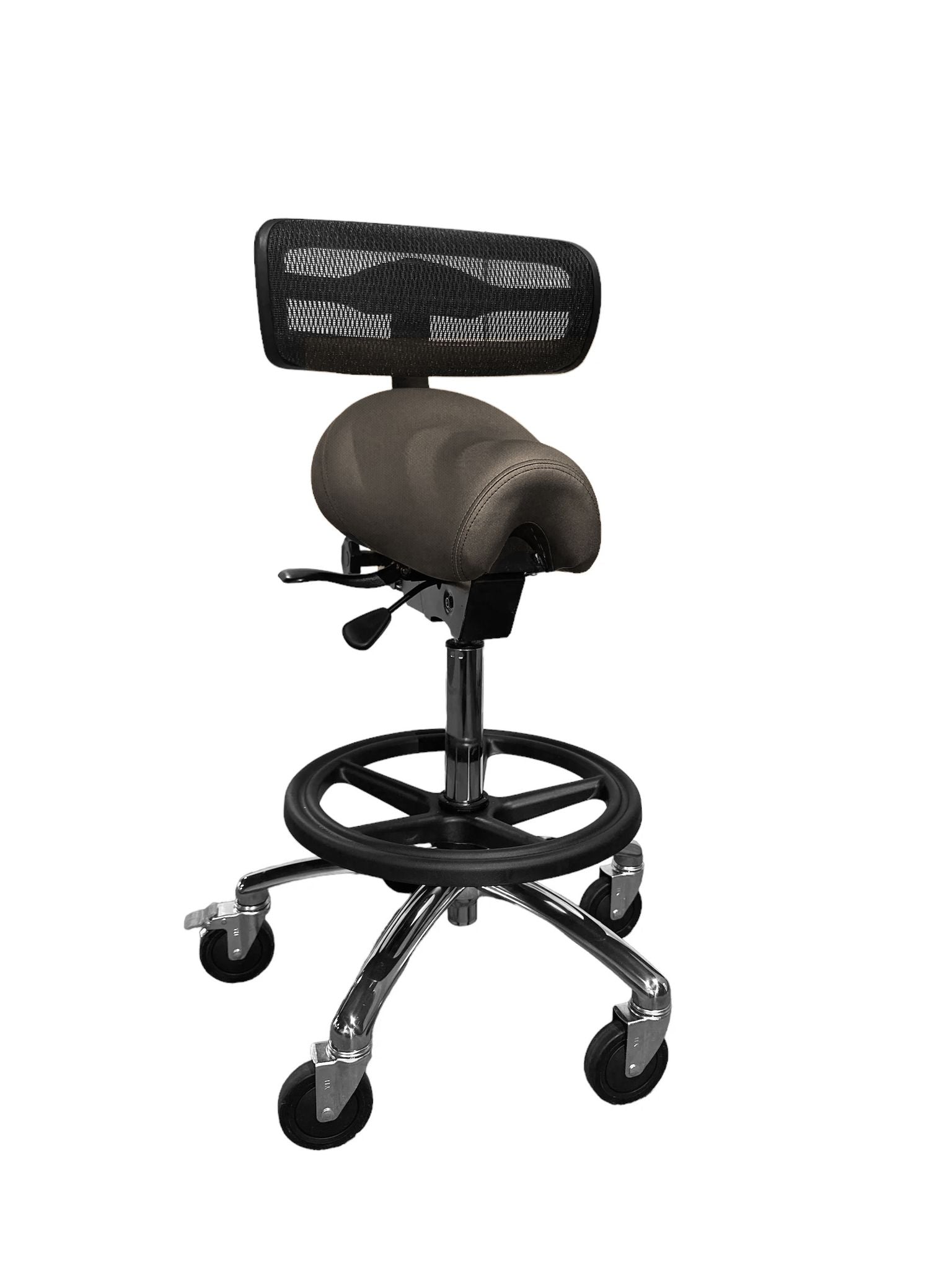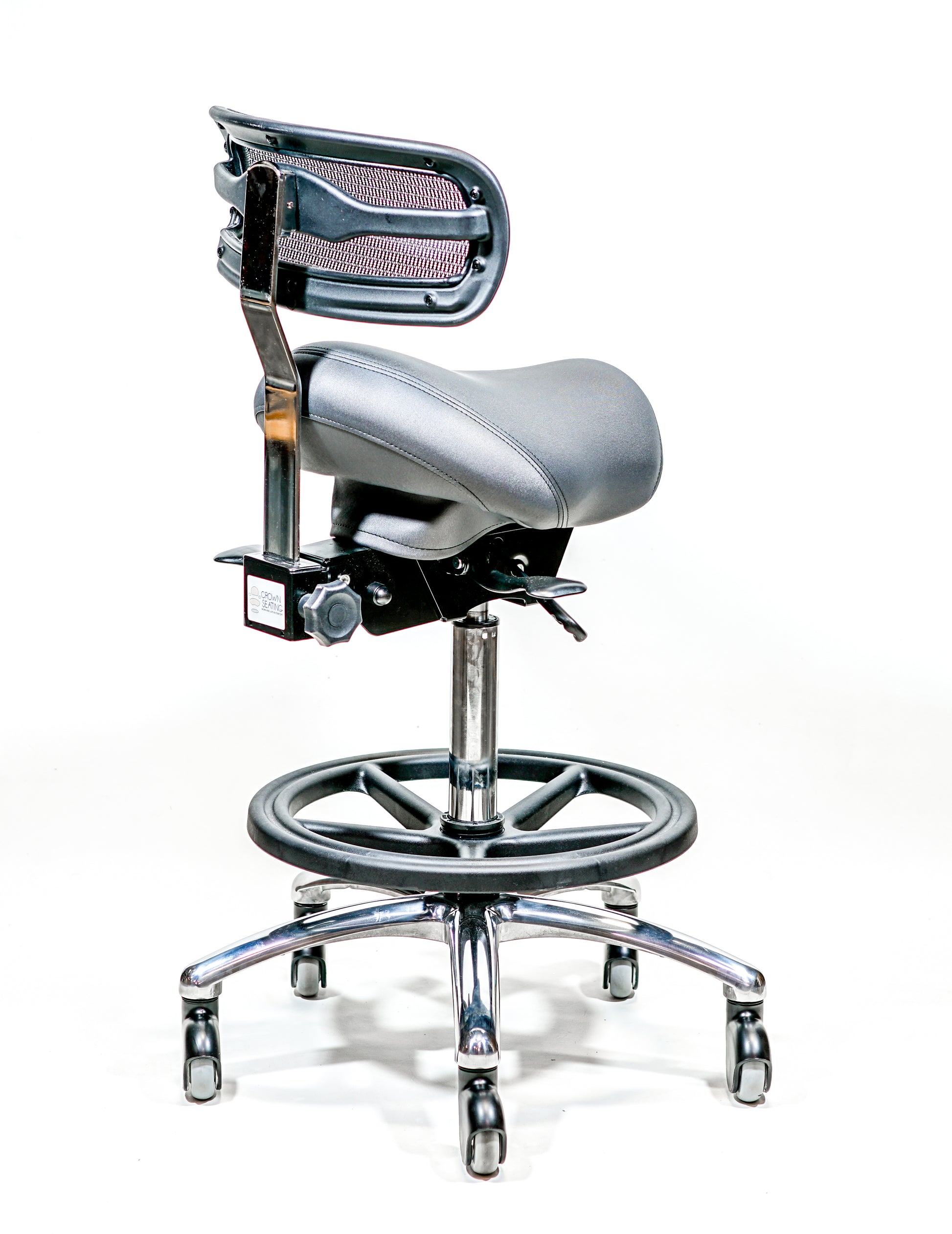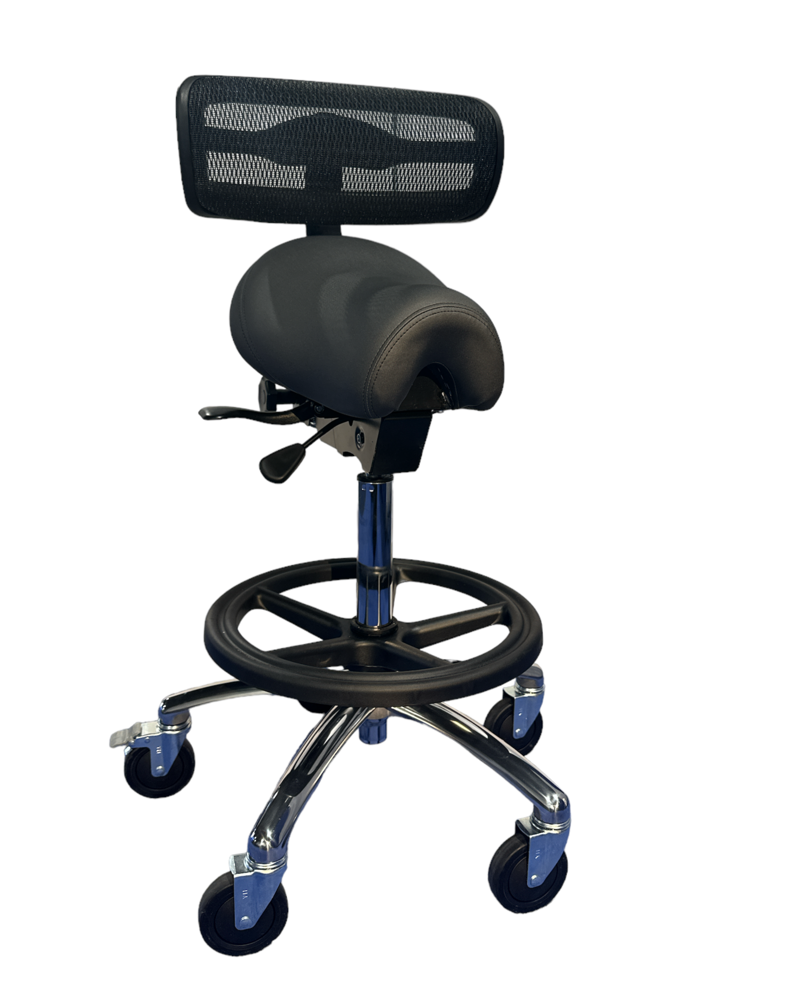 Additions That Redefine Comfort and Functionality: Adding a foot ring, taller cylinder, and a mesh backrest, the Panther Stand-Sit Saddle Stool is reimagined as a versatile stand-sit solution. Embracing the traditional shape of a Western saddle, this stool caters to the dynamic needs of veterinary professionals, further enhancing your ability to provide superior care to animal companions.