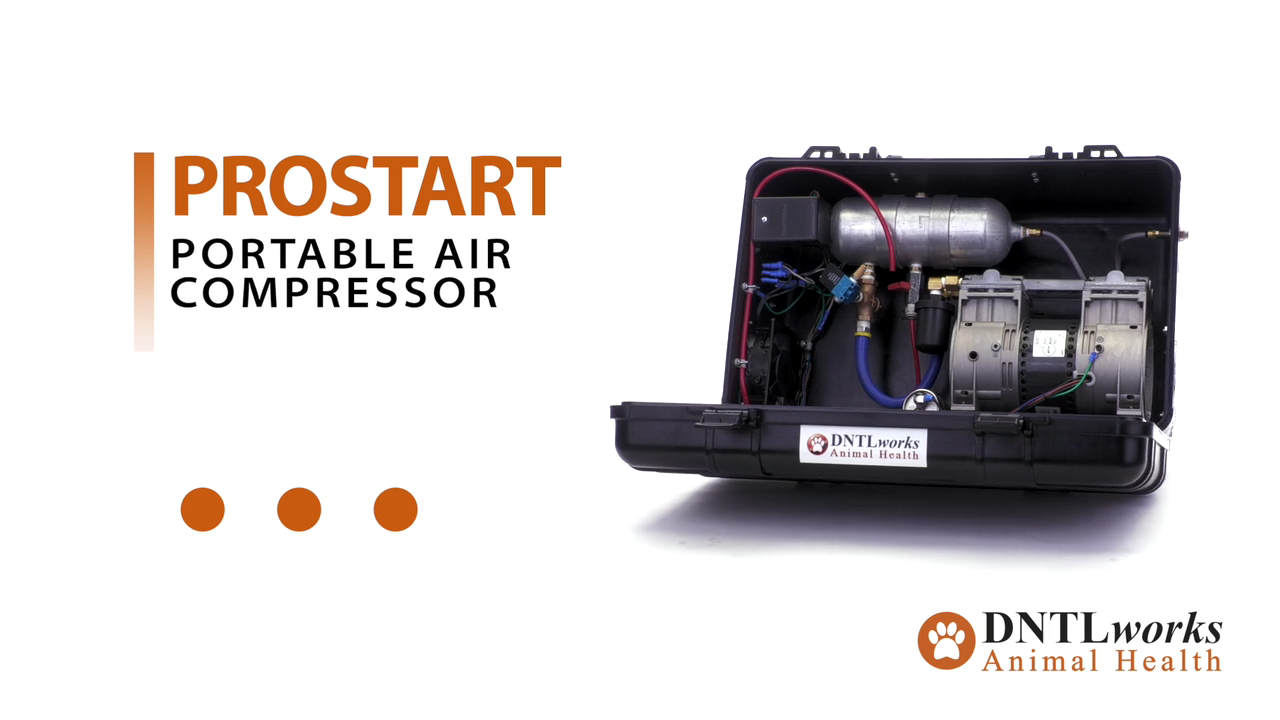 The ProStart Portable Air Compressor perfectly complements our ProPak portable delivery units. Housed in a rugged polycarbonate case, the compressor can take the bumps and shock of traveling to any remote location.