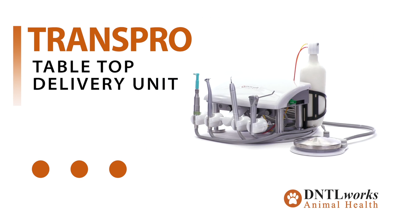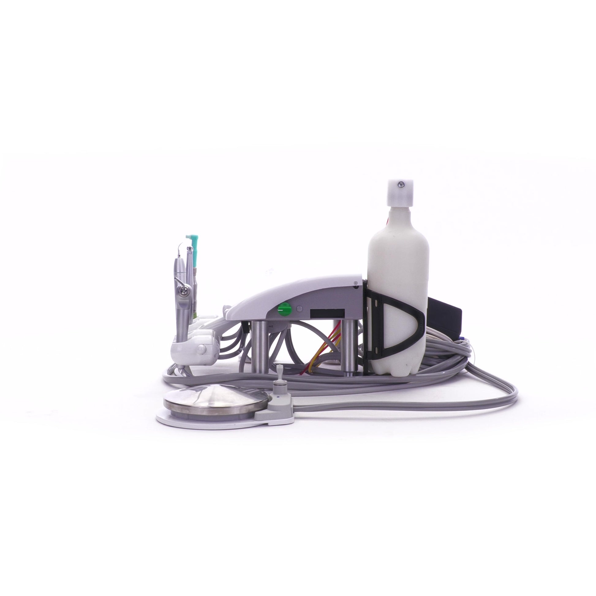 The TransPro dental delivery unit is designed to be set on an operating table, countertop or easily transported. It requires a separate compressed air source or nitrogen tank.