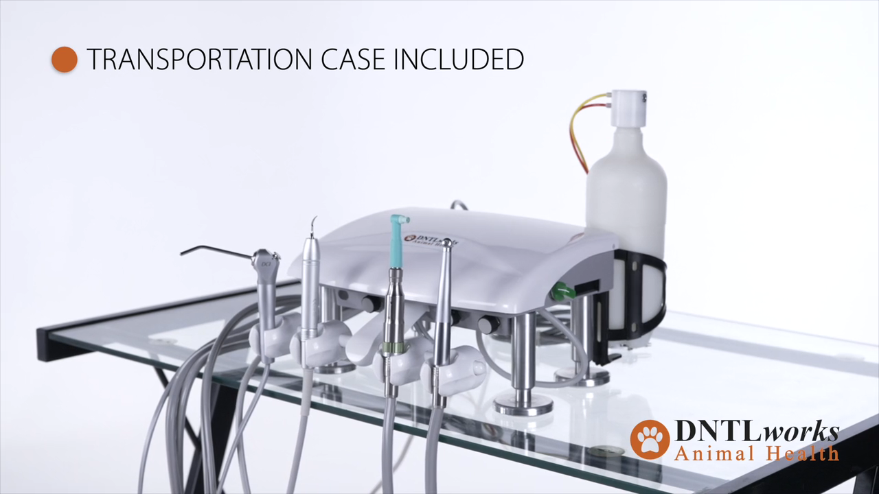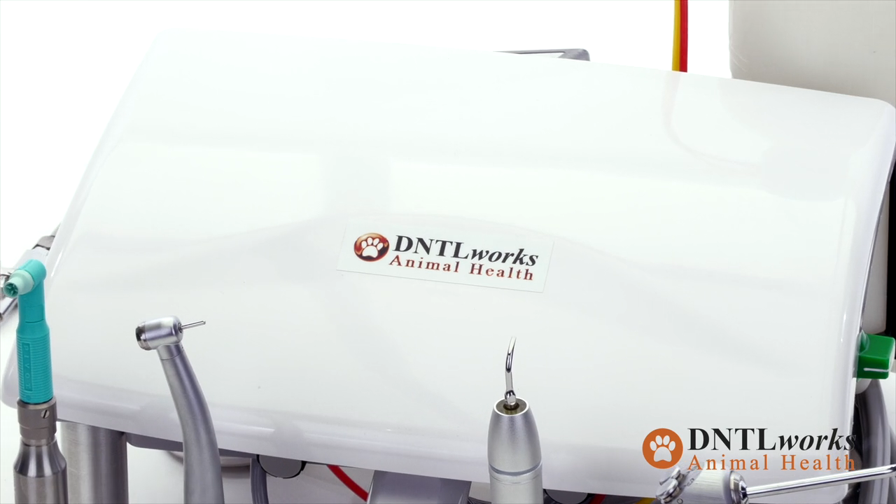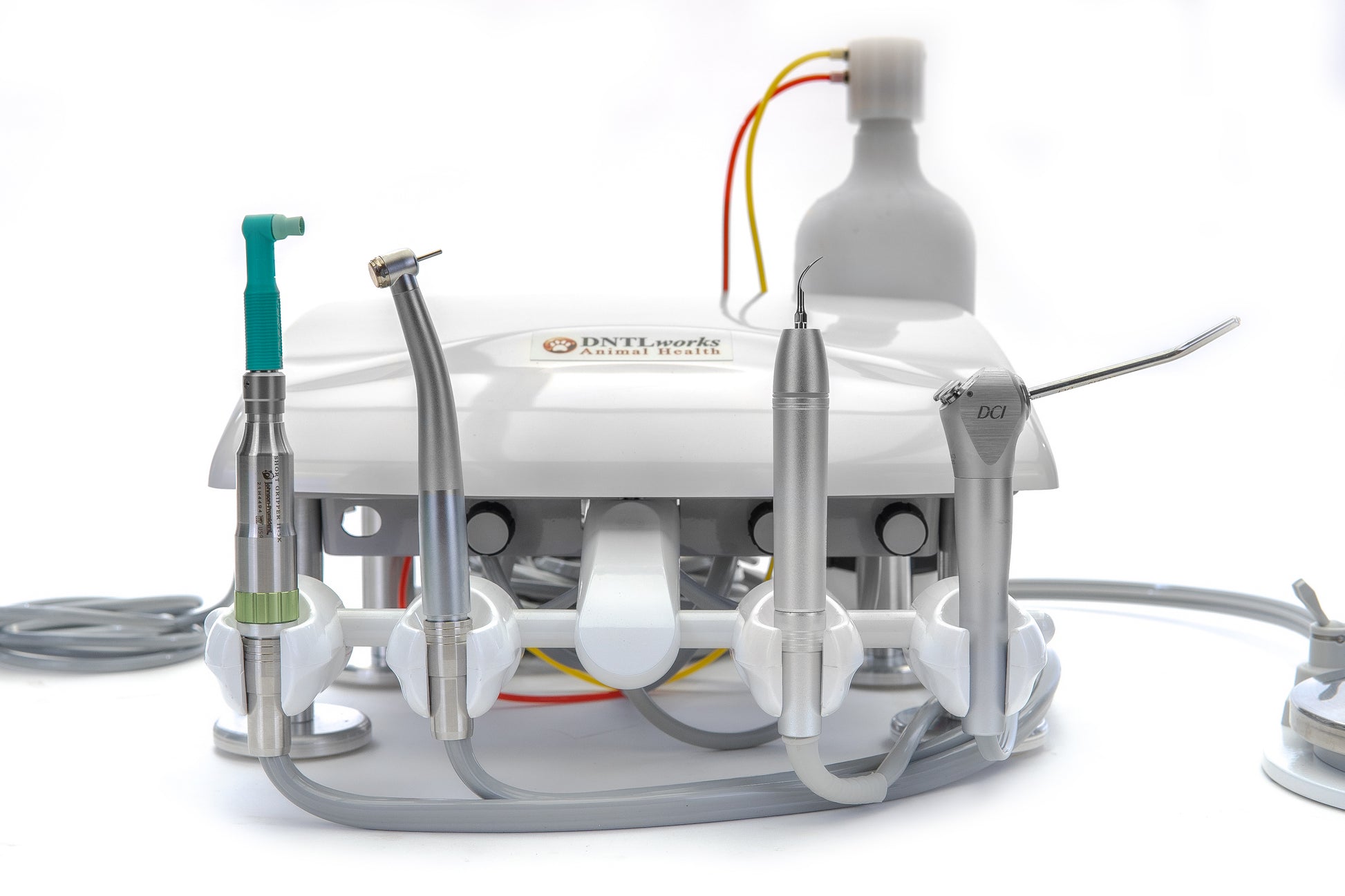 This unit is suitable for use in dental procedures, including cutting and polishing, on small animals. It can be set on an operating table, countertop, or transported as needed.