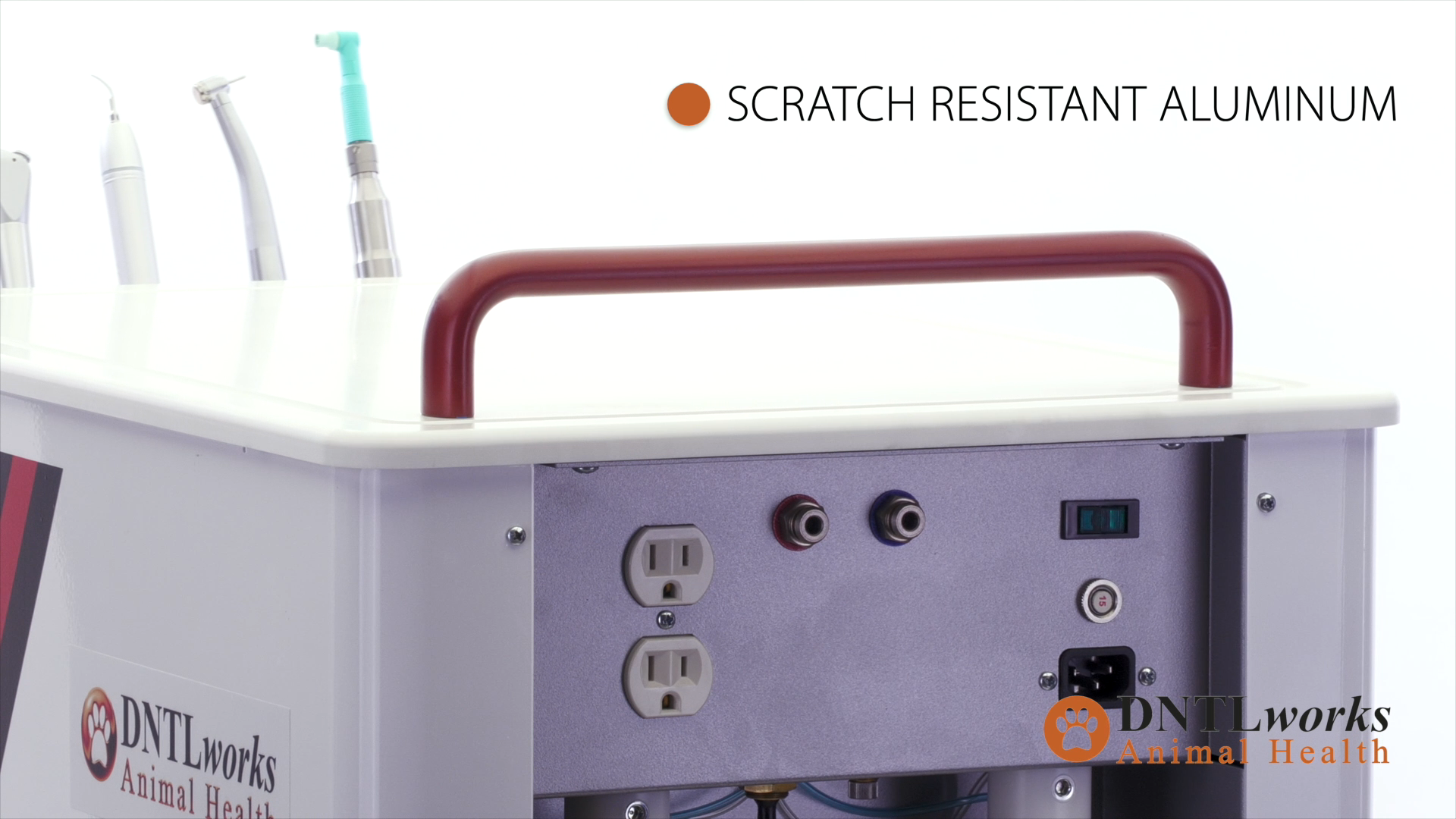 Composite Top Work Surface and Aircraft-Grade Aluminum Chassis: The unit is designed with a composite top work surface and an aircraft-grade aluminum chassis. These materials are both durable and easy to clean, maintaining a hygienic working environment for veterinary dental care.